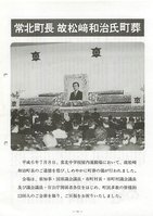 蕊灘灘灘鰯灘議議可’一~屋車霞一鍵灘蕊霧議蕊謬F1F国獅噸一1画F1苧垂.由平成6年7月8日、常北中学校屋内運動場において、故松崎和治町長のご遺徳を偲び、しめやかに町葬の儀が行われました。会場は、県知事・国県議会議員。市町村長・市町村議会議長及び議会議員。官公庁関係者各位をはじめ、町民多数の皆様約1200人のご会葬を賜り、ご冥福をお祈りいたしました。-12-