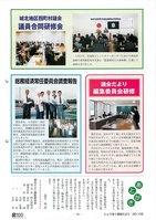 城北地区四町村議会城北地区四町村議会蕊員合同研修会議員合同研修会聯~悪可阿燕マ宮’両~.ヤオ意・ケ浄5月17日常北町コミュニティーセンターにおいて政治評論家の浅川博忠先生を迎え「混迷政局と小泉政椛」と題して識寅を受けました。〆総務経済常任委員会調査報告ー議会だよ’集委員会しりよ委修編研,~4塗蝿癖.‐苧昌罰蹴灘浬ボ=写遍識鍵溌蝉「委員会は、読みやすく親しまれる議会だよりの発行をめざして、6月4日宮城県蔵王町議会の議会広報発行までの経過について、意見交換をしながら調杢研修して参りました。その中でレイアウトの手法、編集体制と手順、活動状況、町民の声を取り入れ、早期発行に努力する等、わかりやすい議会広報紙づくりに取り組んでおられました。本町も町民の方々に議会活動や行政の動きを広く知っていただくため、親しまれる広報紙づくりに努めて参ります。‐糸満市の肉用牛施設は、畜産振興総合対策事業により平成13年に完成した施設であり、繁殖頭数百頭を目標に、恵まれた自然条件の中で、優秀な畜種の導入などで家畜の増頭と改良を図っていました。また、家畜ふん尿を堆肥化することにより、環境問題に配慮した適正な家畜ふん尿の利用にも努力していました。城辺町の風力・太陽光発電施設では、風力・太|場光を未来の新エネルギーとして一部実用化しており、無尽蔵でクリーンな自然エネルギー発電システムの本格的な実用化に向けての研究・開発に努力していました。ノ一一『一一▲《一応一一一酷一■■ニュ酔呼群■一}一幅一二一一一一一一一一一一一目[《〈一一一委員長阿久津堅次副委員長永山高男委員関谷誠〃大竹正雄〃小林宏〃小坪孝今年は例年より台風の発生が多く、すでにn号が発生し、日本列島を襲いました。台風が去ると梅雨が明け、連日の猛暑、干天続きで磯作物の被害も心配されます。まだまだ暑い日が続きますが、暑さに負けずに毎日を送って下さい。議会だよりもそれぞれの考え方が正しく伝わるよう見直す中で、日本語の表現の豊かさと使用方法の難しさを知り、編集委員一同、親しまれる議会だよりの紙面づくりに更に努めて参ります。(関谷誠記)じようほく議会だよりNO,108E謹薯古里座金草1…耳叉は甚館戻してL、■・-14-