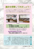 お知らせ議会を傍聴してみましょう!-今、町ではどんなことが議論されているのだろうか。どんな計画があってどのように進んでいるのだろうか。みなさんに身近なことです。どなたでも傍聴できますので、ぜひ一度議会の傍聴にお出かけください。-●←了定例会会場傍聴者報告第3回臨時会(11月10日開催)第4回臨時会(11月30日開催)第4回定例会(12月13日~16日まで開催)1人2人延べ11人次回の定例会は3月6日からの予定です。(コミュニティセンター城里1階サークル室の予定)一1日程など詳しいことは議会事務局へ】TEL.029-288-3in(内線302)議会広報委員会委員長小林副委員長河原井委員杉山南峰加藤余水薗部■煽裳鶴偲。謹んで新年のお慶びを申し上げます。3.皿の溌災では途方もない無力感と悲嘆に心が凍りついた一年でありましたが、人の紳、地域の連帯、世界の人々の友情が心にしみた2011年でした。元旦を迎え賀状に目を通すと、被災された友人から「震災での被災者を忘れず日本の幸せを願って行きたいです。」と、被災された人を思う挨拶に胸が熱く成ると同時に心の温かさと元気を頂いた思いでありました。本年も国内の閉塞感や世界的経済不安、政治の物裡と先が見えない状況ですが、町議会では、6月議会より毎回計上される災害復旧費に慎重審議し、執行部と一丸となり再興発展に取り組んでます。今年は、辰年、町にとっても昇る龍のように勢いのある年にしたいと思います。杉山消記紀文大祥一夫夫治清介宏しろさと議会だよりNo.2916