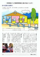 ≪各家庭からの接続管埋設工事が始まります≫ 排水設備の設置例 下水道は.公共下水遭(町が施行管理)と排水設備(個人が施行管理) かうでさてい.嘉す。 ⊂= 「 一一■ 」■ - 《快適なくらしを求めて》 わたしたちは、毎日のくら しの中でたくさんの水を使っ ています。この使われた水は どこに行くのでしょうか。 下水道は、これらの水をき れいにしてから川や海にもど す大切な役割を果たしていま す。下水道の整備は、わたし たちのくらしに快適な生活環 境をもたらし、自然とのより よい関係を生み出してくれま す。 《流域下水道》 常北町の汚水を受けもつ流 域那珂幹線(汚水管)は、那 珂西字松山下から那珂川を逸 へ、那珂町菅谷地内を通り、 那珂町、勝田市の公共下水道 からの汚水を集めながら、勝 田市にある終末処理場の那珂 久慈浄化センターで処理され ます。 この那珂幹線(汚水管)の 管渠埋設工事は、菅谷地内か ら急ピッチで進められていま す。 芸真下水道》 流域那珂幹線と接続する常 北町の公共下水道幹線管渠は、 那珂西松山下から国道123 号線を経由して石塚横町地内 まで約4・0血で町が設置し 管理します。この幹線管渠埋 設工事は、平成4年度から那 珂西地内の国道123号線で 工事を実施しています。平成 6年度も引き続き石塚田町地 内に埋設工事を予定していま す。また、枝線管渠について は、平成6年度から役場周辺 釣4・Obの面的整備(各家 庭からの接続管埋設)を実施 する予定です。 工事施工中は、人や車の交 通など何かとご迷惑をおかけ いたしますが、最新の技術と 工法により懸命の努力をして おりますので、皆様のご理解 ご協力をお願いいたします。 丁水月 広報じよう!まく