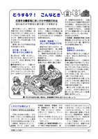 ごうする?! こん喀こ舌 応急手当●夏場に多いけがや病気の手当 せ、衣服をゆるめます。 ①ぬ れタオルなどで頭部や体を冷や すと同時に、手近なものをうち わ代わりにしてあおいで風を送 り、体温を下げます。(卦体温 が下がり意識が戻ってくるか意 識がしつかりしているときは、 水分をとらせます。 <日射病・熱射病の予防>長時 間高温にさらされないように気 をつけることが一番。帽子やタ オルの使用も有効です。 ヽ 虫刺され 患部をひっかかない 海や山で夢中になって遊んで いると、虫などに刺されること があります。 ●手当のポイント……①刺され た後に毒針や毛が残っていると きはピンセットなどで抜きます。 決してひつかいてはいけません。 (か刺されたところの周りを押し て、□で毒を吸い出します。 (釘水で洗浄した後、抗ヒスタミ ン軟こうなどを塗ります。 <へどにかまれたら>毒ヘビは 上あこに2本の長い毒針がある ので、かまれた所に2個のきば の跡があれば危険です。 傷口に□をつけ強く吸い出す とともに、かまれた部分から心 臓に少し近い所をしばって医療 機関に急ぎましよう。 思わぬけがや病気に落ち着いて対処する 夏の行楽シーズン。野外での 活動が多くなるこの時期は、思 わぬけがをしたり病気にかかつ たりすることがあります。¥ん なとき、簡単な応急手当の仕方 さえ知っていれば落ち着いて対 処できます。 夏場に多いけがや病気の応急 手当を紹介します。 切り傷・すり傷一 傷口を十分に消毒する ¥で 夏と言えば、半袖・半ズボン。 特に子どもは、転んだりすべつ たりして、手足に傷を負いやす くなります。 ●手当のポイント……①傷口か ら細菌が人らないように、まず は、土や砂なとを水道水などの きれいな水でしつかり洗い流し ます(水筒やミネラルウオーター があれば、傷口の洗浄に役立ち ます)。①傷口とその周辺に消 毒液をかけ、清潔なガーゼで覆つ て上からばんそうこうを張るか 包帯を巻きます。 日射病・熱射病一 涼しい所で体温を下げる 直射日光に当たりながら、ま た高温多湿の場所で、長い時間 遊んだり作業をしたりしている と、頭痛や吐き気を感じるとき があります。これが、日射病と 熱射病です。 ●手当のポイント……(D涼し< 風通しのよい場所に運んで寝か ■それぞれ症状が重い場合は、医療機関で早めに診てもらいましょう。 常備薬(解熱剤、胃腸薬、かぜ 薬、腹痛薬なと)、動こう、体温 計、目薬、ピンセ、ソト・はさみ・ 小型ナイフ、安全ピン、ティッ シュペーパー〕 ※あまり大荷物にならないよう に、コンパクトにまとめて持 ちましよう。 <点検しよう素庭の救急箱>せつ かく備えた家庭の救急箱も、薬 が古かったり足りなかったりし たままでは、いざというとき使 いものになりません。2、3か 月に一度は点模し整理しておき ましよう。保管場所は、家族の みんなが知っていて、幼児の手 の届かない所が安全です。 こうして家庭に1セットきち んと備えておけば、地震や火炎 なとの炎害時にも役立ちます。 これだけは備えよう 行楽時に便利な応急医薬品 行楽にお出掛けの際に、ぜひ 用意してほしいのが簡単な応急 セ、ソトです。持っていくと重宝 する主な医薬品は次の通りです。 〔消毒液、救急ばん¥うこう、 脱脂綿、ガーゼ、三角巾・包帯、 広報じようほく