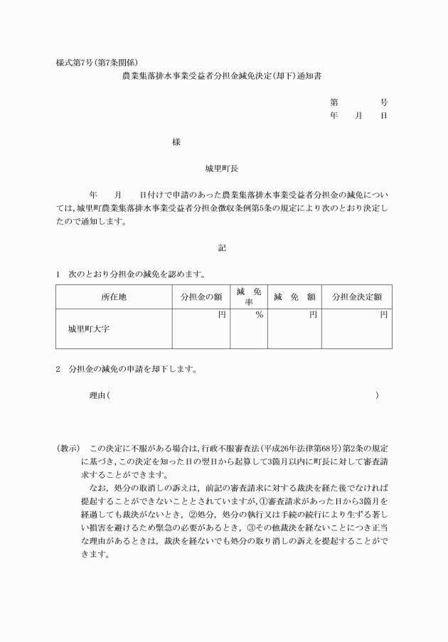 2 町長は,申告書の提出があったときは,その適否を調査し,農業集落排水事業受益者認定(却下)通知書(様式第2号)により通知するものとする。